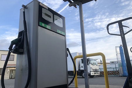 本社には給油スタンドや洗車機を備え、車両整備は専属工場が対応。